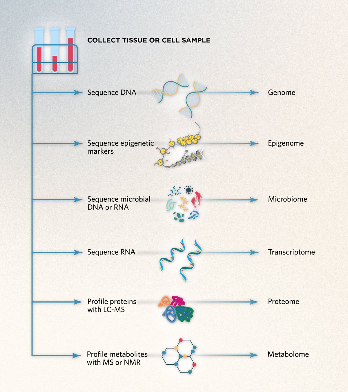 Multiomics is a multidisciplinary, holistic approach to biological analysis in which scientists integrate and analyze different types of omics data from a single sample.1 The omes commonly featured in multiomics analysis include the genome, epigenome, transcriptome, proteome, metabolome, and microbiome.2
